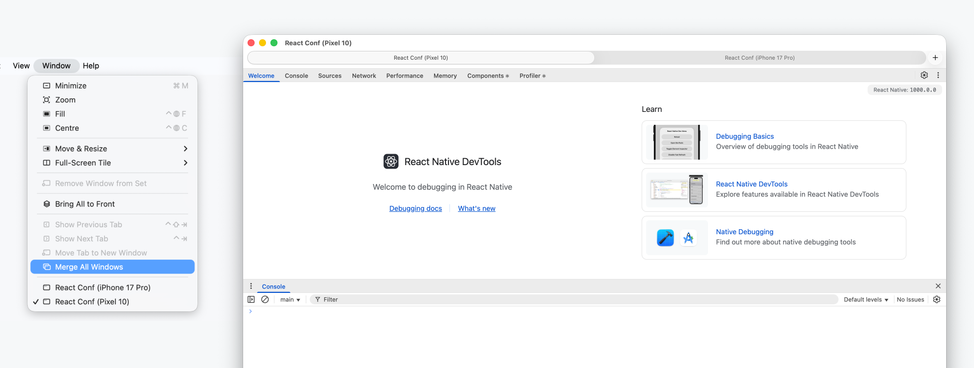 - Native tabs on macOS: We've updated the desktop app to compile for macOS 26, and have also enabled system-level tab handling for power users. Access via Window > Merge All Windows, when multiple DevTools windows are open.
